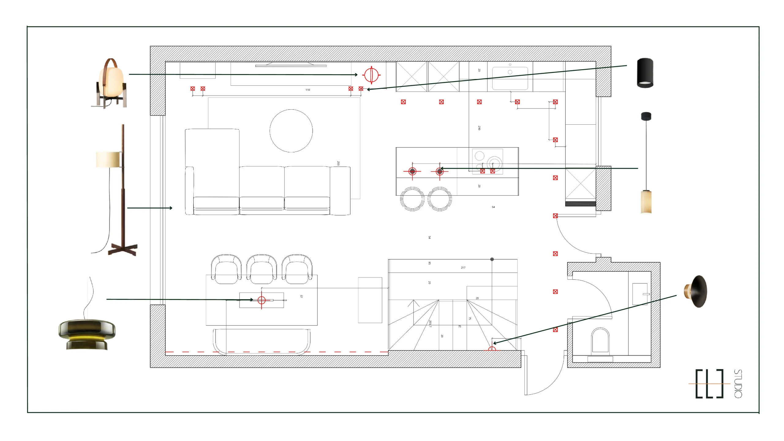 La luz tiene el poder de cambiarlo todo. Tendrás los planos con la distribución de iluminación adecuada para cada estancia y para cada momento, indicando modelos y su posición.